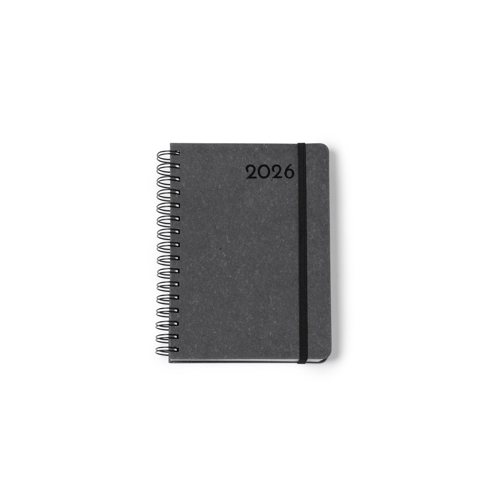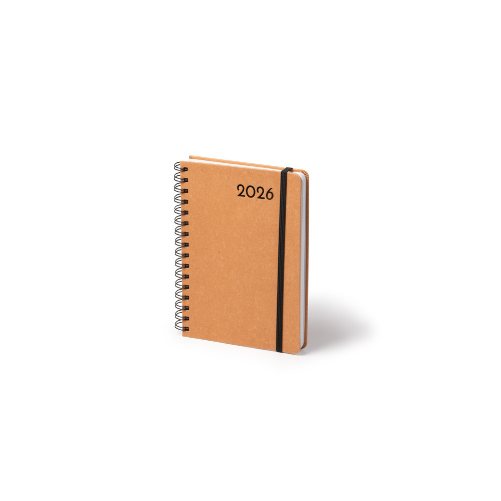 Reliure à anneaux A5 avec couvertures en cuir recyclé gaufré en bas-relief et bande élastique. Comprend 348 pages de papier blanc et 4 pages supplémentaires avec des cartes. Idéal pour organiser vos notes avec style et durabilité.