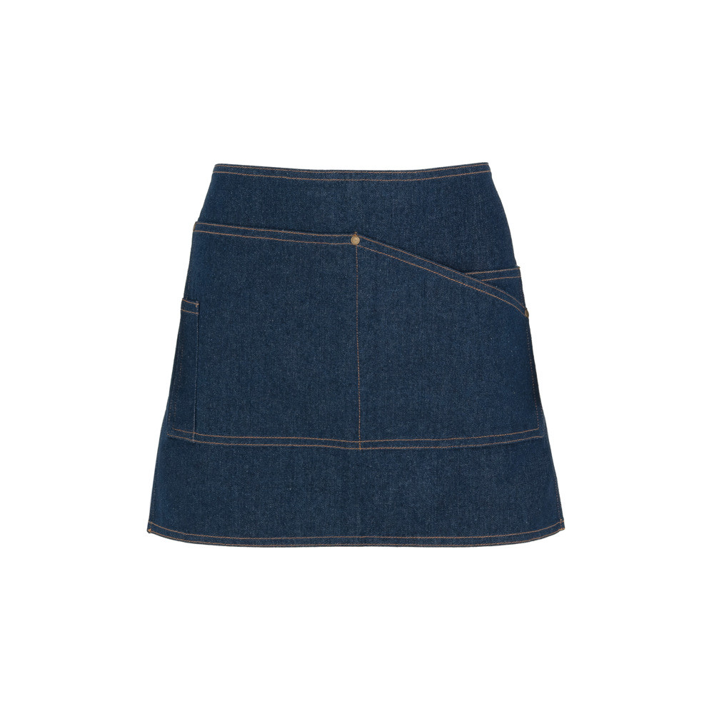 Tablier court en jean.· Fermeture par des liens en sergé contrastés, à la taille pour l'ajustement.· Poche sur le devant avec couture centrale qui divise la poche en deux.· Poche à glissière sur le côté droit.· Une poche intérieure sur le côté gauche.· Étiquette extérieure Roly WRK.Destinataire :