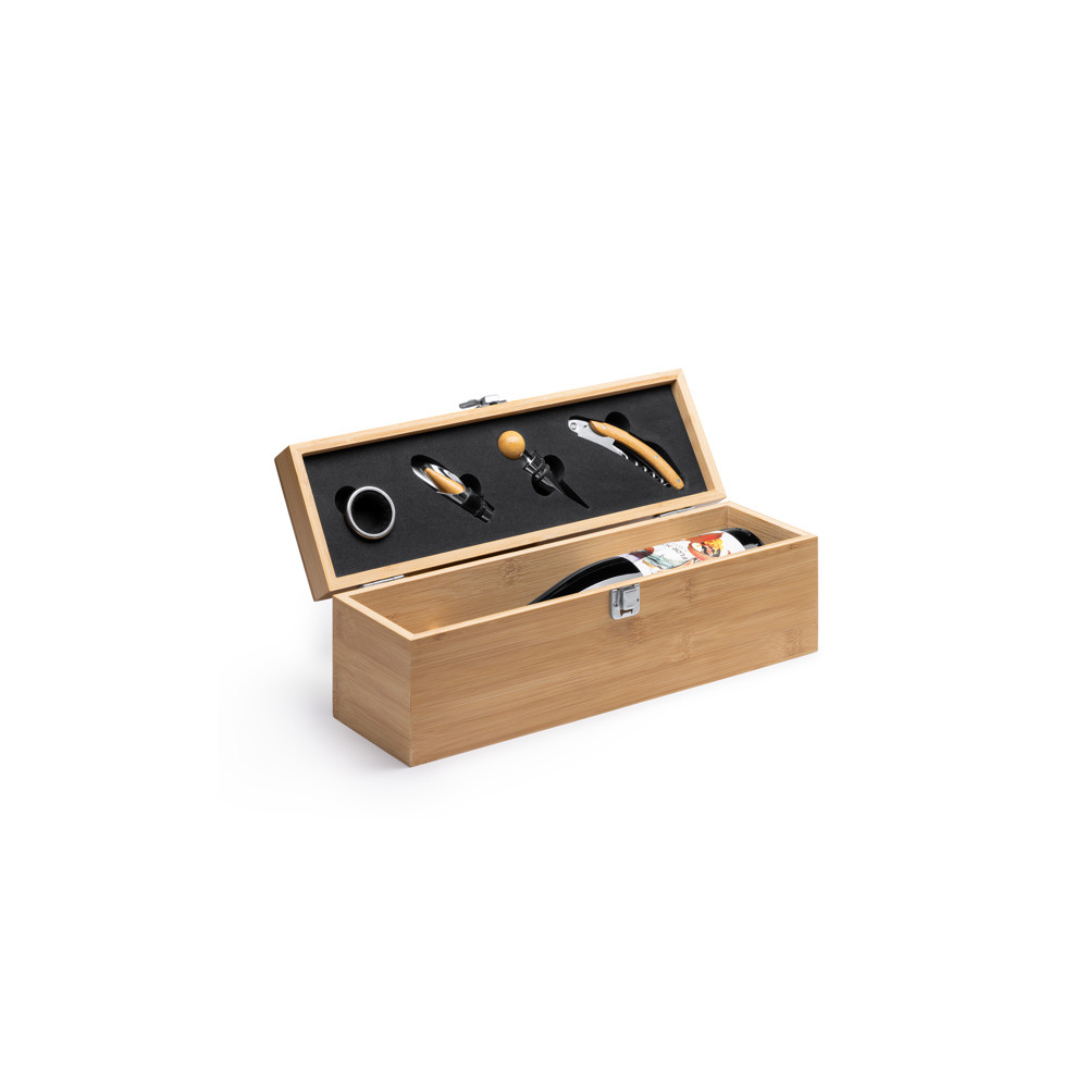 Le coffret à bouteilles de vin en bois est le complément parfait pour transporter et présenter la bouteille de vin de manière élégante. Fabriqué en bois, ce coffret offre une protection sûre et un look sophistiqué.Le coffret présente un design spécial qui comprend un ensemble d'accessoires de vin présenté dans le couvercle. Cet ensemble se compose d'accessoires en acier inoxydable, tels qu'un tire-bouchon avec un coupe-capsule, un distributeur, un bouchon et un anneau antigouttes. Ces éléments constituent tous les outils nécessaires pour ouvrir et déguster la bouteille de vin en toute simplicité.L'intérieur du coffret est rembourré pour assurer la sécurité et la stabilité de la bouteille pendant le transport. De plus, le bois utilisé dans sa fabrication offre une prDestinataire :