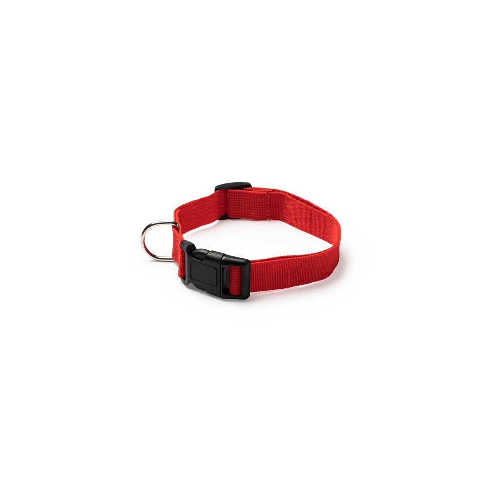 Collier pour animaux de compagnie en polyester durable et doux. Sangle réglable et boucle avec fermeture à clic. Comprend un anneau en métal pour la laisse de marche.Destinataire :