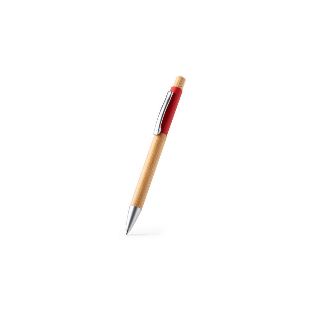 Stylo à bille avec structure et bouton-poussoir en bambou. Détail de couleur doux au toucher. Pointe et clip en métal. Encre bleue.Destinataire :