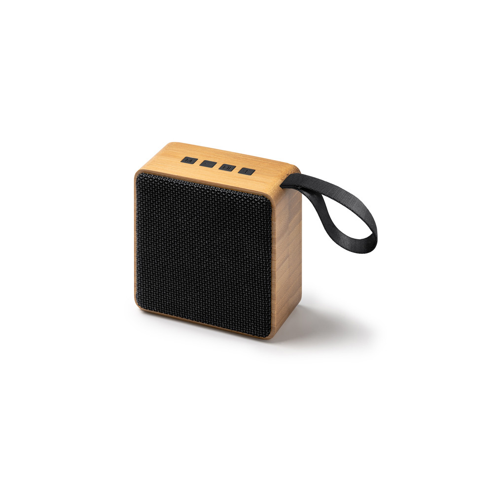 Haut-parleur sans fil avec structure principale en bambou et tissu RPET. Sortie 3 W et batterie rechargeable. Connexion de type C. Câble fourni. Présentation en boîte écodesign.Destinataire :