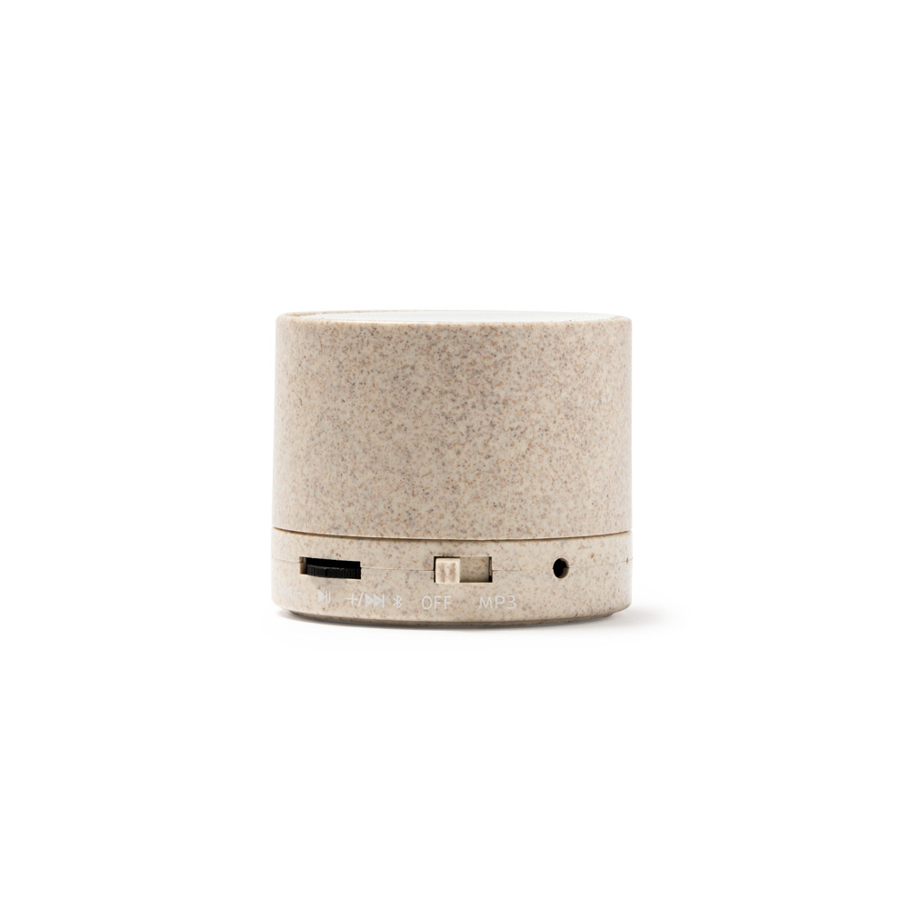 Haut-parleur sans fil en fibre de blé. Écoutez la musique que vous voulez, où vous voulez grâce à sa fonction de radio FM, Bluetooth, carte micro SD, et la fonction mains libres. Il a une puissance de 3 w. Câble fourni.Destinataire :