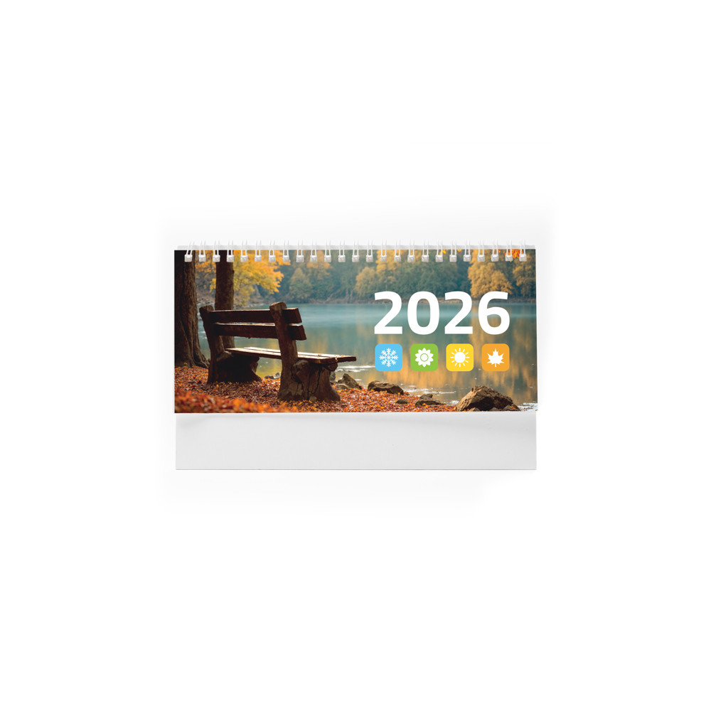 Calendrier de bureau horizontal avec anneaux. design du mois en cours/le mois précédent/le mois suivant/ calendrier annuel. Comprend les saints. Corps en carton idéal pour le marquage. Il comporte 14 pages comprenant la couverture, une page annuelle et une page par mois.Destinataire :