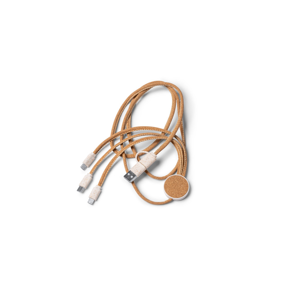 Le câble de chargeur 5-en-1 en liège et en fibre de blé est une solution polyvalente et durable pour charger différents appareils. Avec une longueur de câble de 125 cm, il offre une grande liberté de mouvement et de flexibilité.Le câble dispose d'une entrée USB et USB-C, ce qui vous permet de le connecter à différentes sources d'alimentation, telles que des adaptateurs secteur, des batteries externes ou des ordinateurs. En outre, il offre des sorties USB, Micro USB, USB-C et Lightning, ce qui le rend compatible avec une large gamme d'appareils électroniques, des smartphones aux tablettes ainsi que d'autres appareils.Sa conception en fibre de blé et en liège lui donne non seulement un aspect naturel et esthétique, mais renforce également son engagement en faveur de la durabDestinataire :