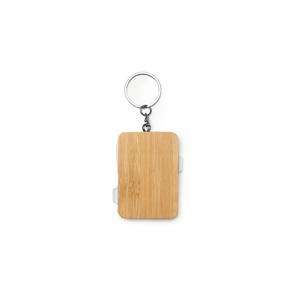 Porte-clés avec câble de charge 3 en 1. Structure principale en bambou naturel. Connexion Micro USB, Type C et Lightning. Présentation en éco sac avec ouverture.Destinataire :