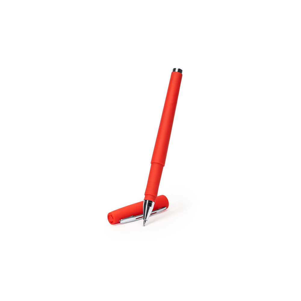 Stylo à bille roulante avec clip et pointe en métal. Corps et capuche en une seule couleur et doux au toucher. Charge jumbo de 0,7 mm avec encre bleue.Destinataire :