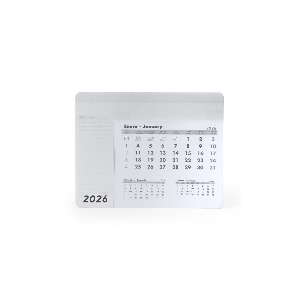 Tapis de souris rectangulaire avec calendrier. Recouvert d'une couleur et d'un transparent, après quoi vous pouvez voir la feuille correspondante du mois. La couverture est levée pour accéder au calendrier de 12 feuilles en espagnol et en anglais, dont les feuilles sont arrachées. Sur chaque feuille mensuelle, le mois en cours, le mois précédent et le mois suivant apparaissent. Base antidérapante noire. Poids du papier 80 g/m². Épaisseur de la couverture 3 mm.Destinataire :