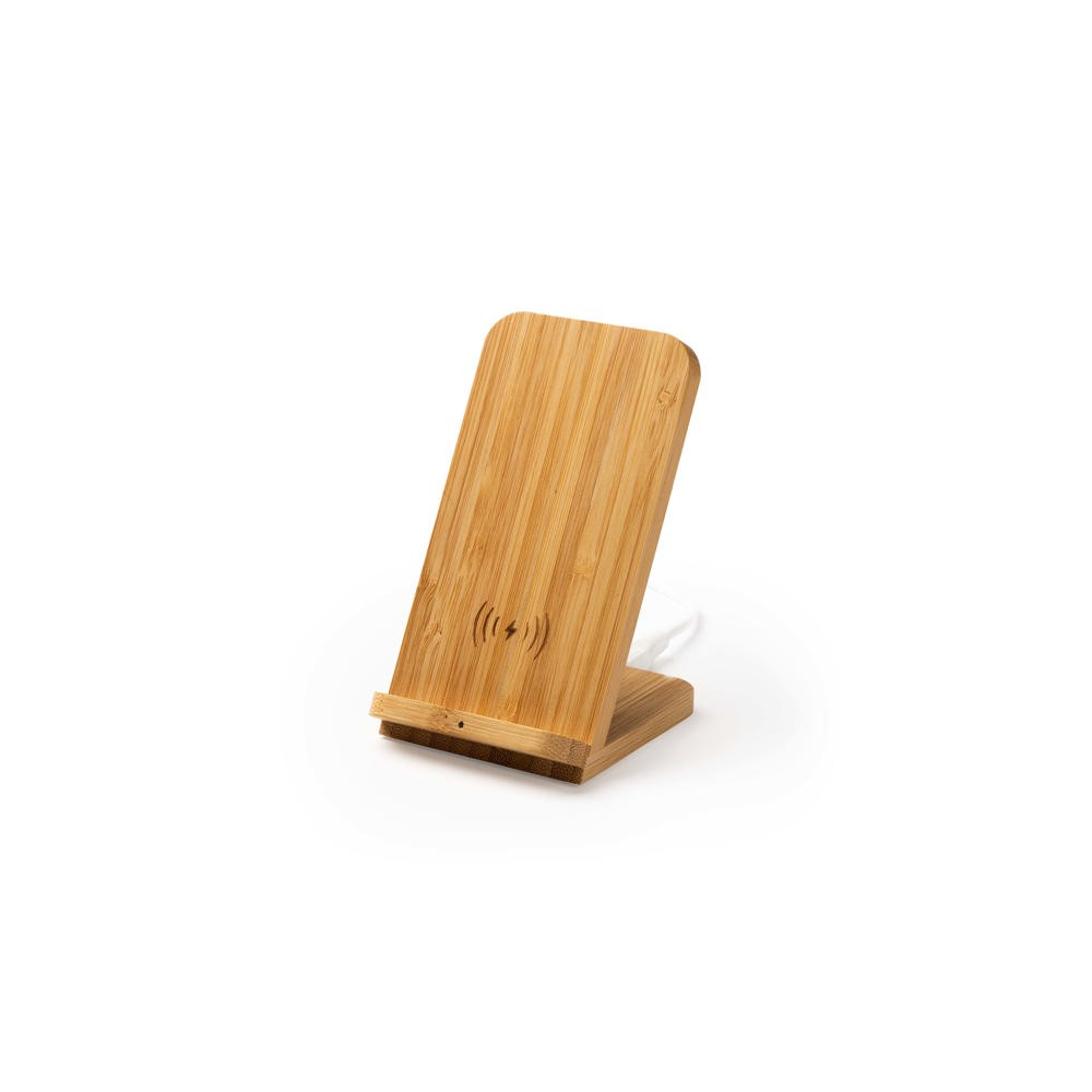 Chargeur sans fil avec corps en bambou. Placez votre smartphone dessus et laissez-le recharger. Compatible avec les modèles de technologie sans fil 10 W. Puissance de sortie de 5 W. Câble fourni.Destinataire :
