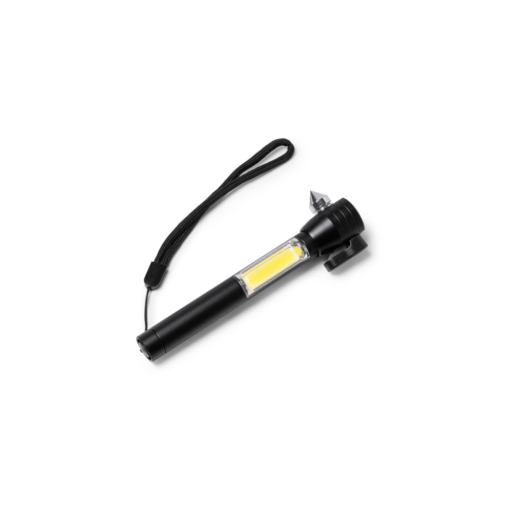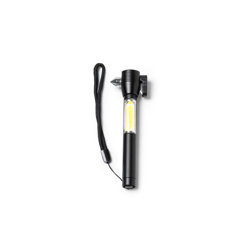 Lampe de poche multifonctionnelle avec fonctions marteau, brise-verre et coupe ceinture de sécurité. Pile AAA incluse. Présentation en boîte design.Destinataire :