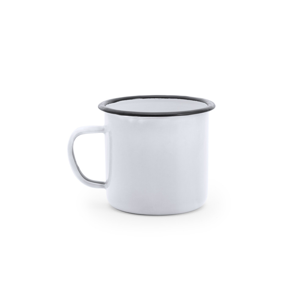 Mug en métal d'une capacité de 380 ml. Conception de finition laquée et imperfections irrégulières pour un plus grand réalisme rétro.Destinataire :