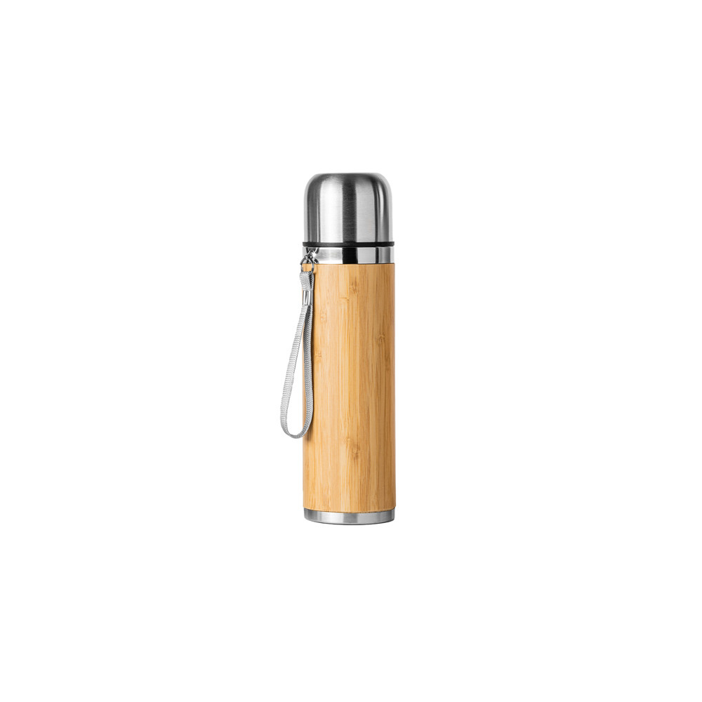 Isotherme en acier 304 à double paroi et bambou. Capacité 420 ml. Comprend une anse pour le transport. Présentation dans un coffret design kraft.Destinataire :