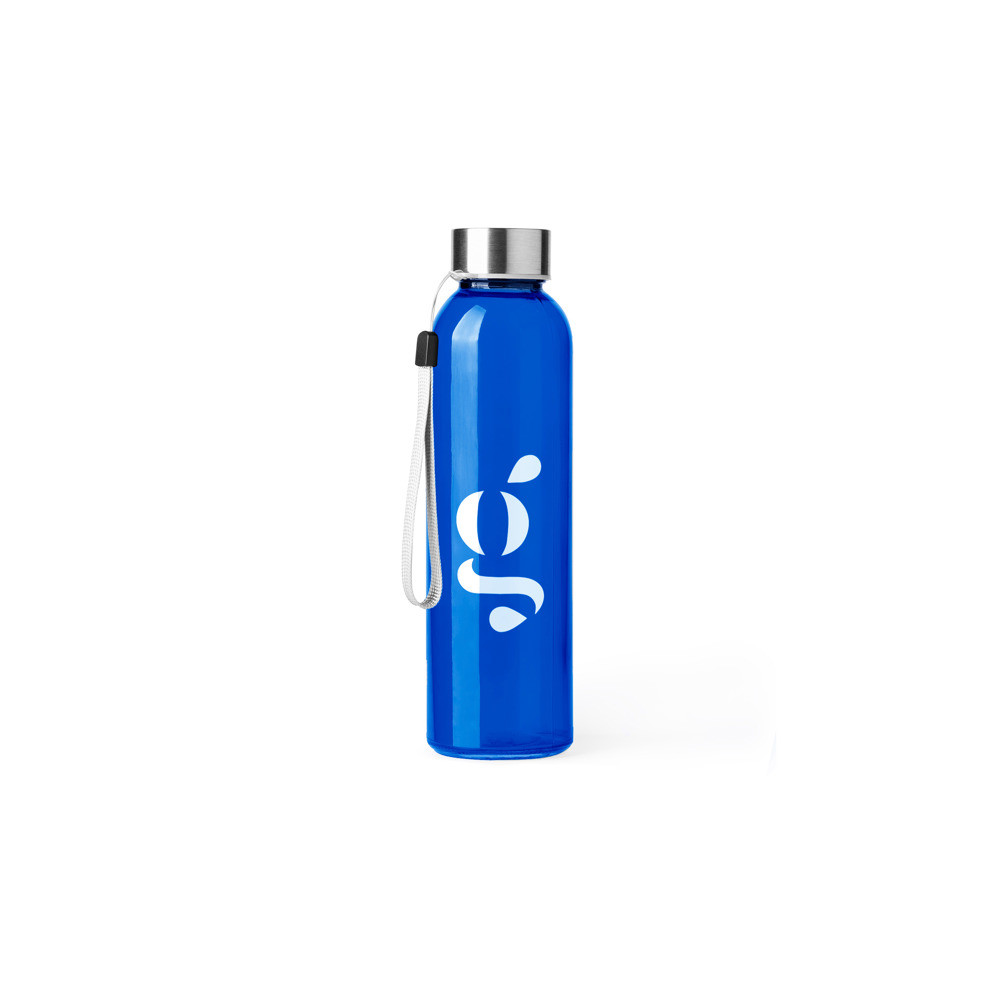 Bidon en cristal disponible en différentes couleurs, avec couvercle à visser en acier inoxydable et sangle de transport grise.Destinataire :
