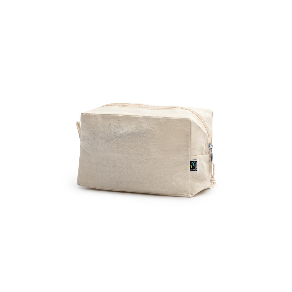 Trousse de toilette multifonctionnelle en 100 % coton issu du commerce équitable (180 g/m ²). Poche principale avec fermeture éclair et tirette assorties.Destinataire :