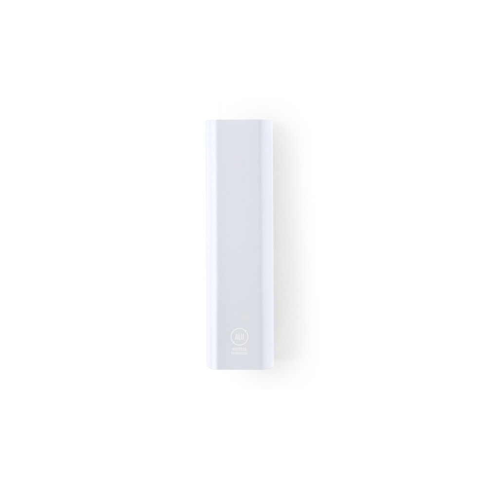Power bank en aluminium recyclé d'une capacité de 2 600 mAh. Indicateur de charge LED. Entrée et sortie type C. Présentation en boîte design.Destinataire :