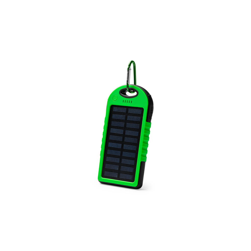 Batterie externe solaire, résistante aux éclaboussures d'eau et avec une capacité de charge élevée. 4000 mAh Inclus un indicateur de recharge lumineux. Sortie de courant 5 W/2.1 A.Destinataire :