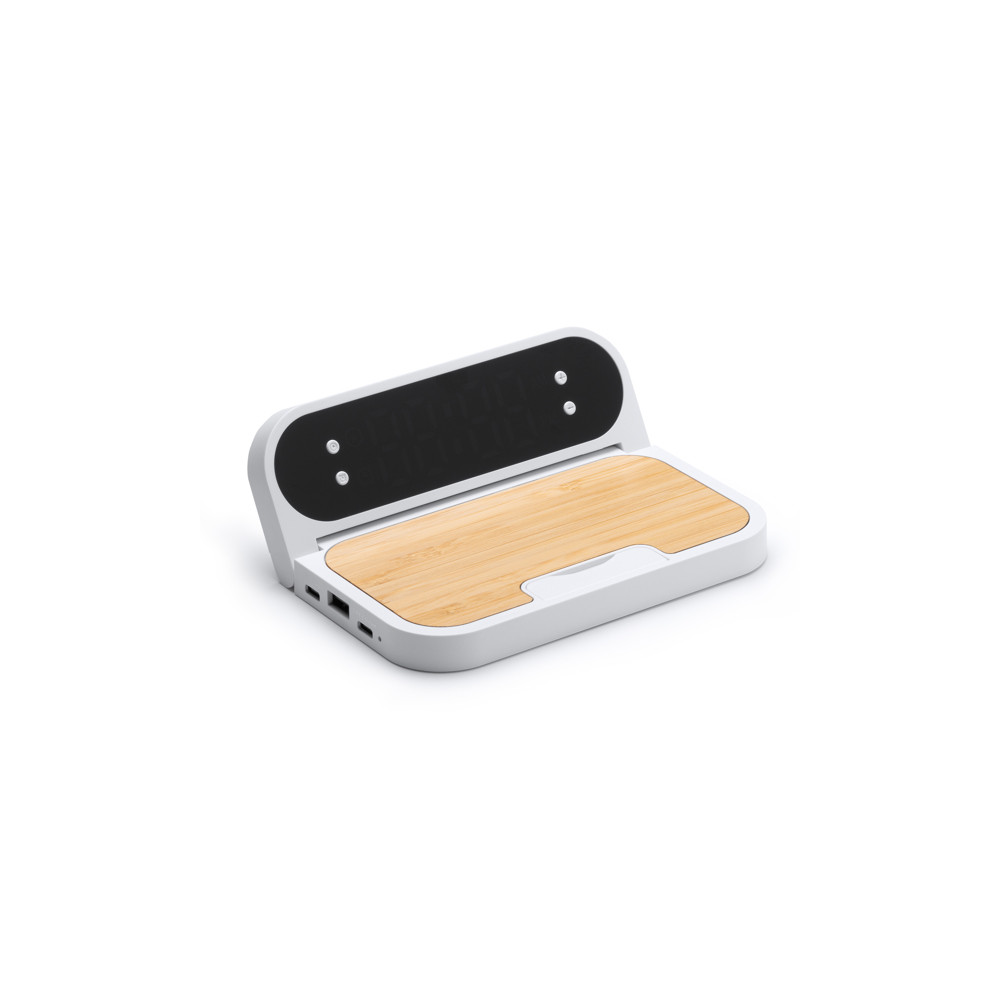 Le chargeur sans fil en bambou et ABS est une option élégante et durable pour charger facilement vos appareils. Ce chargeur combine la beauté naturelle du bambou avec la force de l'ABS recyclé, offrant une solution écologique.En plus de sa fonction de charge sans fil de 10 W, ce chargeur dispose également d'une fonction horloge. Vous pouvez l'utiliser pour afficher l'heure actuelle et régler les alarmes en fonction de vos besoins. Par conséquent, vous aurez non seulement un chargeur pratique, mais aussi une montre fonctionnelle.La connexion du chargeur USB-C assure un transfert rapide et efficace de l'énergie vers vos appareils compatibles. En outre, un câble est inclus dans l'emballage pour faciliter la connexion et la charge.Le chargeur sans fil est livré dans un boîtier écDestinataire :