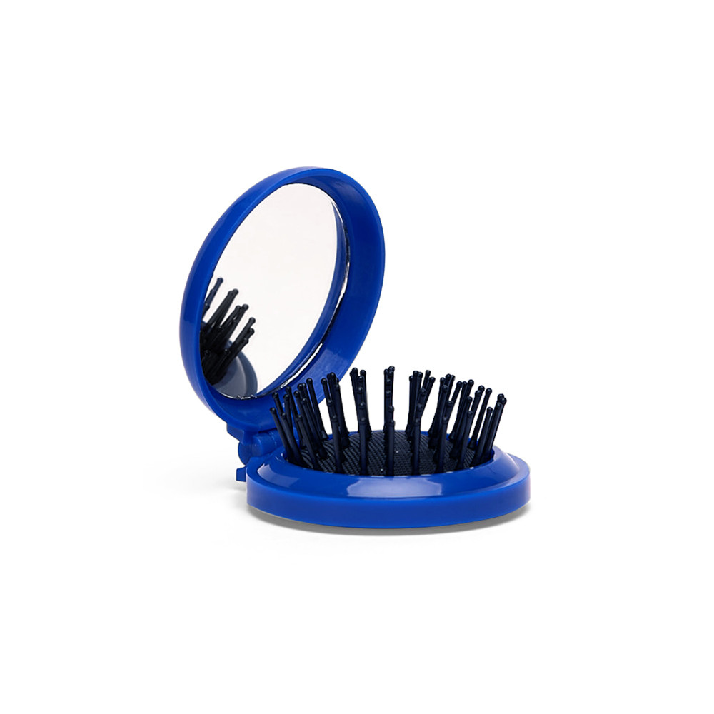 Brosse pliante pratique avec miroir de poche rond. Deux parties, l'une avec le miroir et l'autre avec la brosse, qui, une fois fermé, s'intègrent parfaitement dans un article compact et léger.Destinataire :