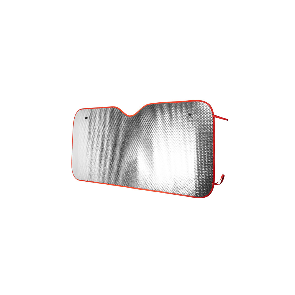 Pare-soleil de voiture avec bulles double face en aluminium. Deux trous dans les deux coins supérieurs pour l'introduction de ventouses pour la fixation à la vitre du véhicule. Garniture et bandes élastiques pour rouler en couleur.Destinataire :