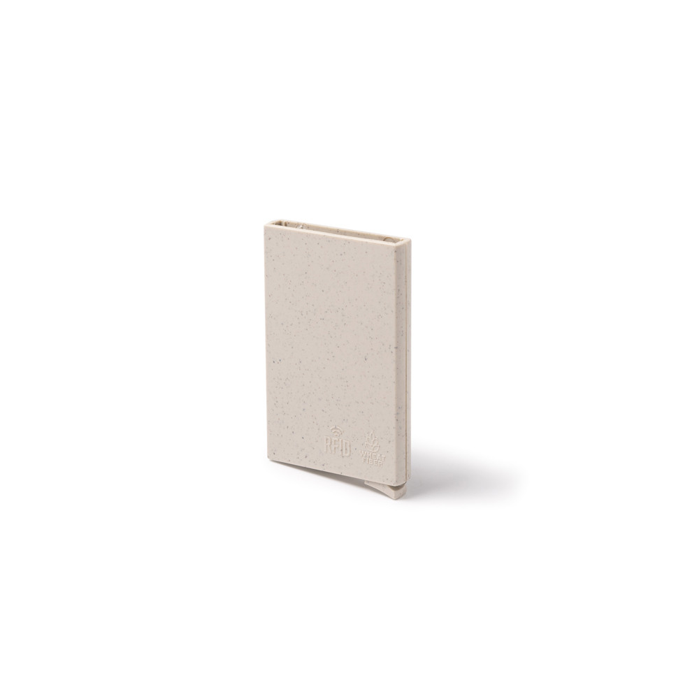 Porte-cartes RFID en fibre de blé. Capacité de 6 cartes avec mécanisme automatique.Destinataire :