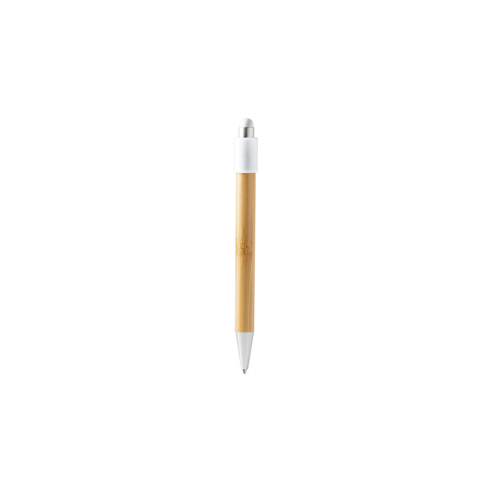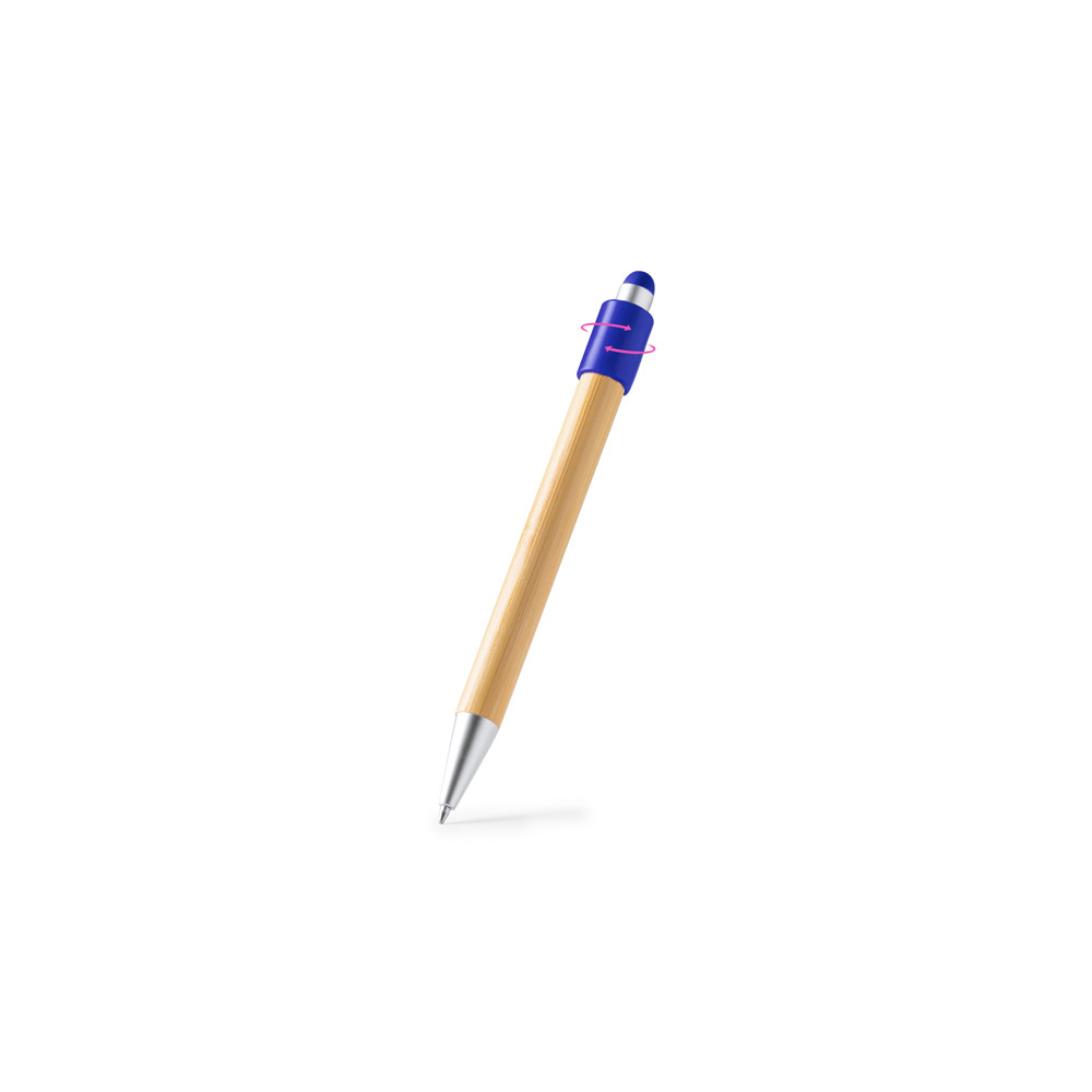 Stylo à bille avec toupie de main. Corps en bambou et aiguille tactile avec détails en finition métallisée mate. Recharge d'encre jumbo en bleu.Destinataire :