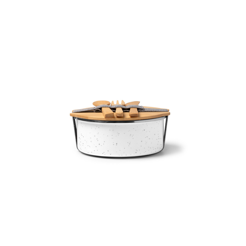 La boîte repas en métal est dotée d'un revêtement en céramique durable et d'un couvercle en bambou fixé à l'aide d'un élastique pour préserver la nourriture en toute sécurité. Elle comprend un ensemble de couverts en bambou très pratiques. D'une capacité de 750 ml, elle est idéale pour transporter des déjeuners sains et durables. Ce modèle allie élégance et fonctionnalité. Il est parfait pour le bureau, l'école ou tout autre endroit où l'on a besoin d'un repas pratique.Destinataire :