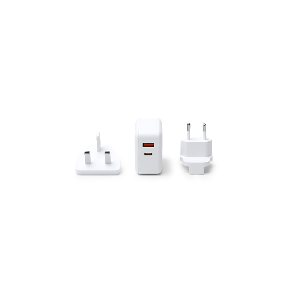 Adaptateur de voyage universel avec connecteurs interchangeables. Valable pour utilisation en Europe, au Royaume-Uni, en Asie, aux États-Unis et en Australie. Avec sortie 3A en USB et Type-C.Destinataire :