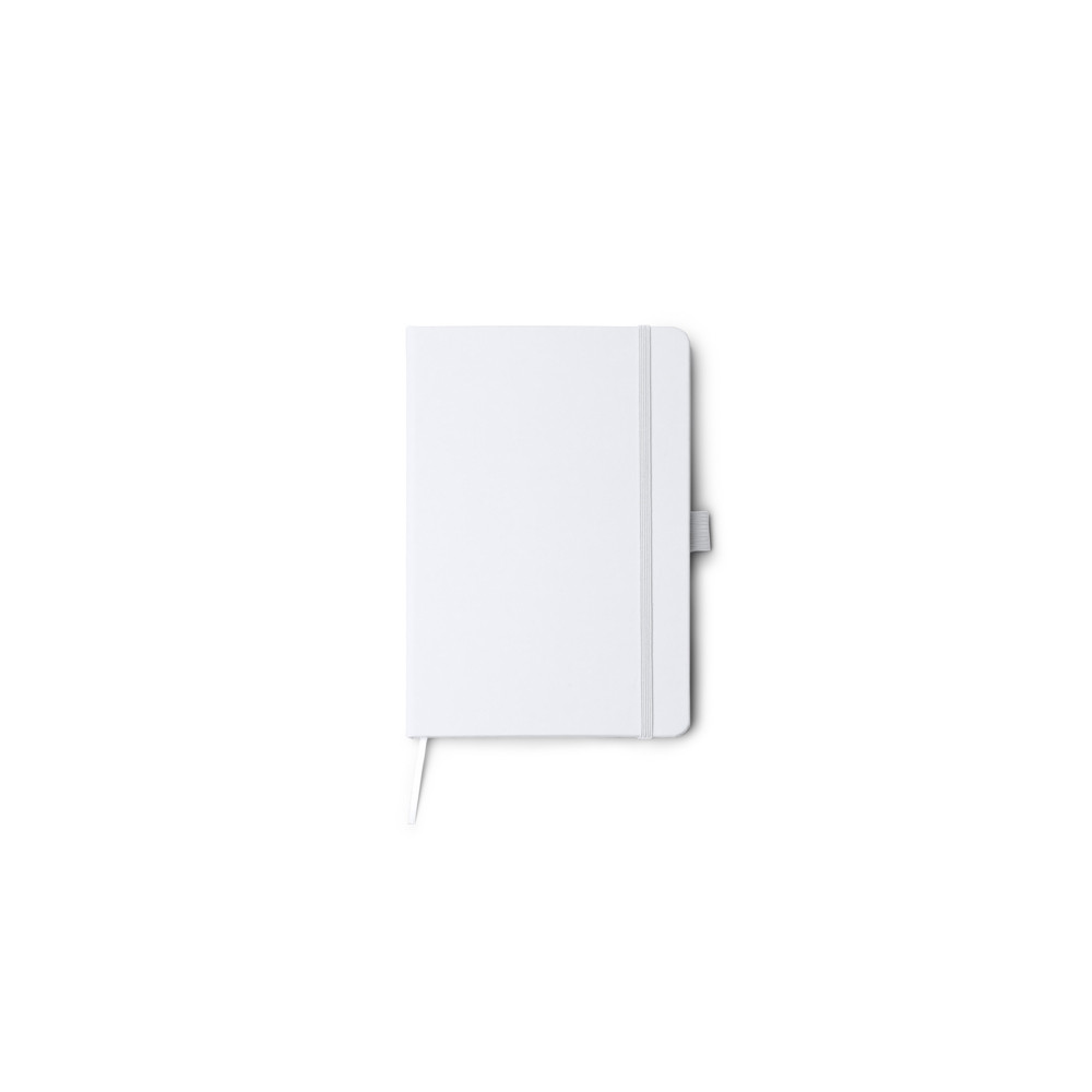 Bloc-notes A5 en PU recyclé avec pages vierges et support magnétique pour smartphone et stylo. Comprend un marque-page, une fermeture par élastique et un porte-stylo assorti à l'extérieur du carnet.Destinataire :
