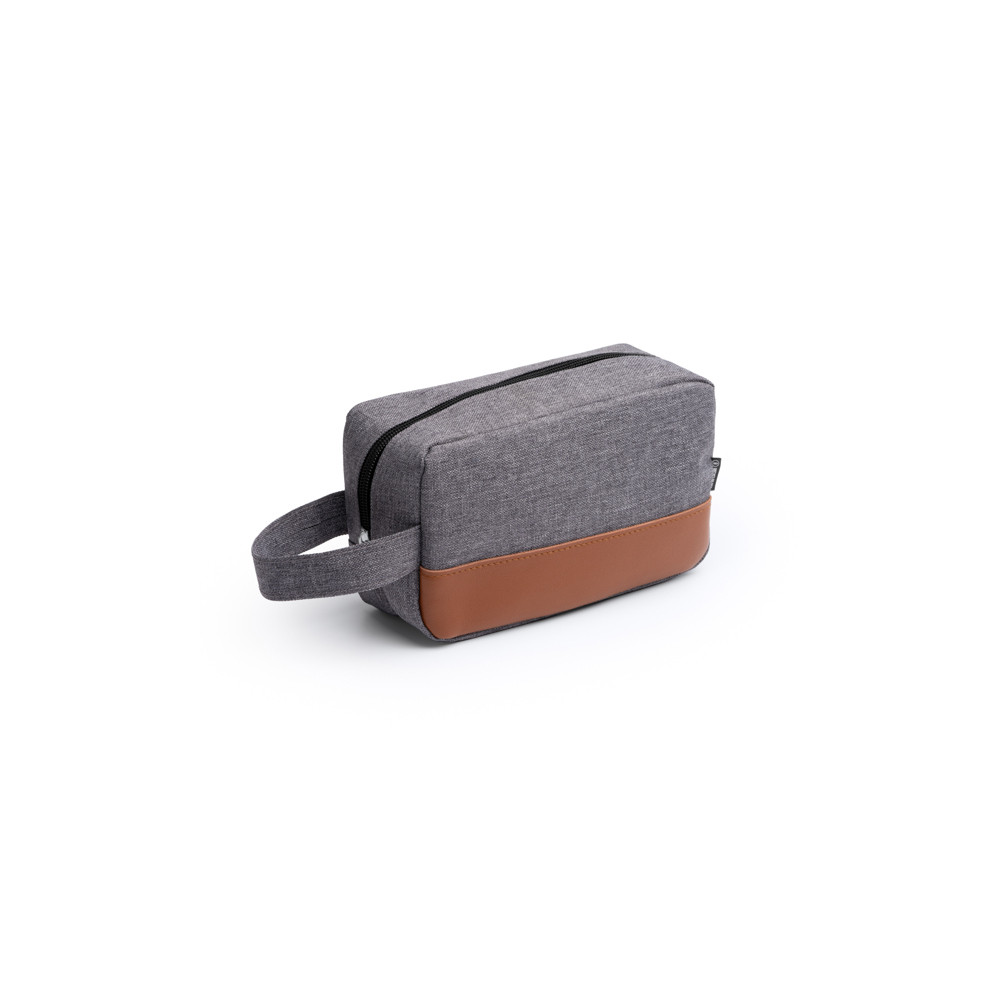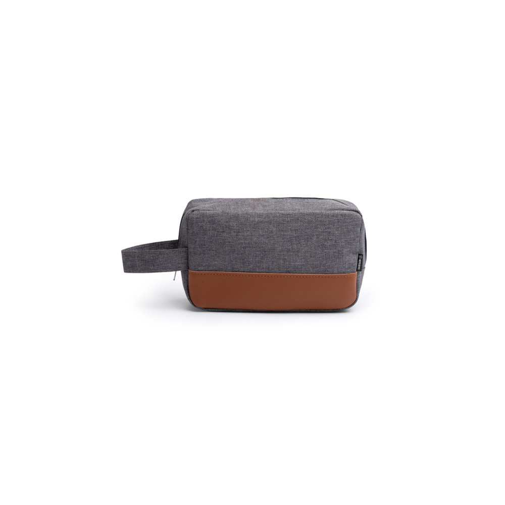Nécessaire en polyester recyclé RPET avec détails en cuir PU, idéale pour le marquage. Comprend une poignée de transport, alliant durabilité et style. Transportez vos affaires de manière confortable et élégante.Destinataire :