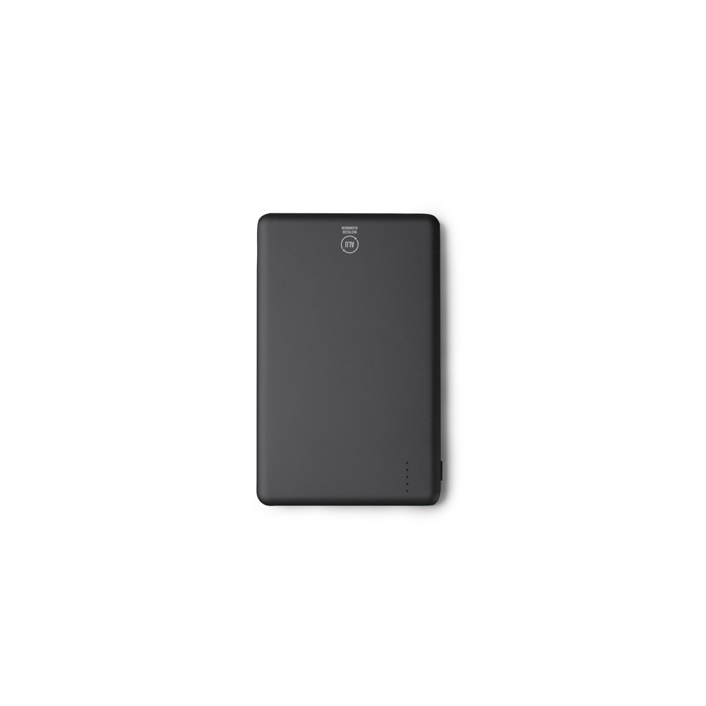 Batterie magnétique externe 5000 mAh avec fonction de charge sans fil. Corps en aluminium recyclé. Courant de sortie 15W. Comprend un câble de Type-C et un anneau magnétique universel. Présentation en boîte éco-conception.Destinataire :