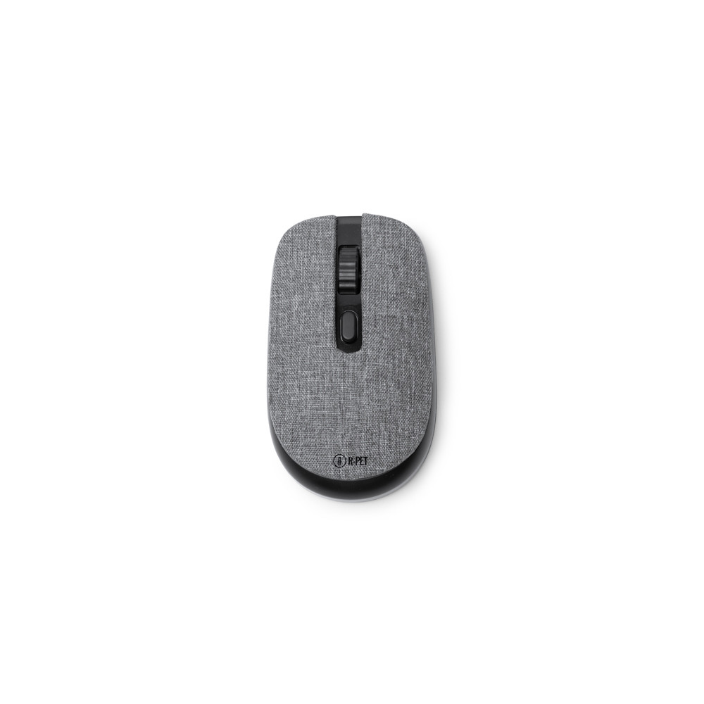 Souris sans fil en ABS et R-PET recyclés avec capteur optique de précision. Fonctionne avec 2 piles AA (non incluses). Présentation en boîte éco-conception.Destinataire :