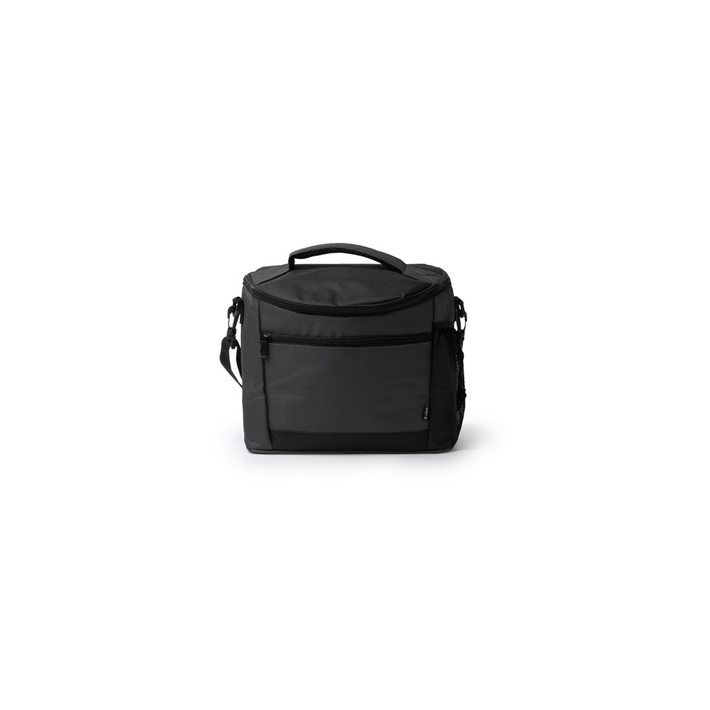 Refroidisseur grand format en RPET 600D. Poche avant et poche latérale avec fermeture à glissière. Intérieur isotherme. Une sangle de transport réglable. Capacité : 8LDestinataire :