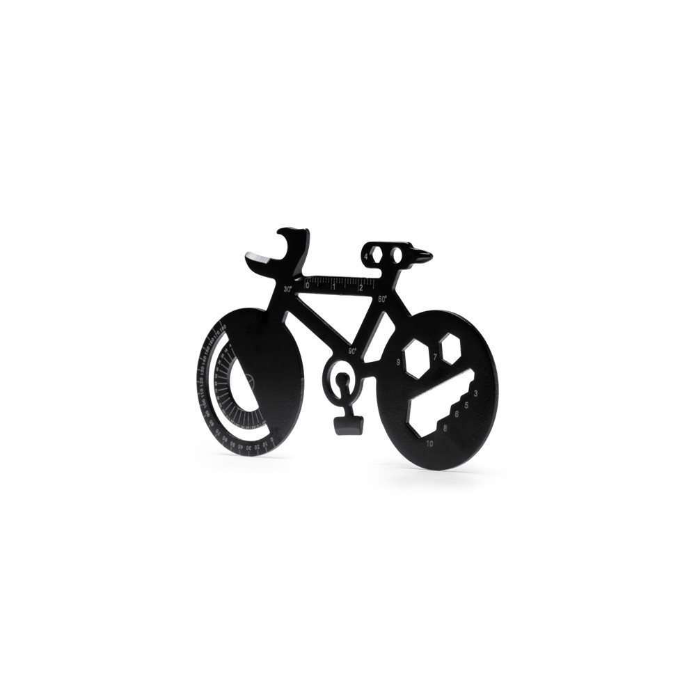 Outils multifonctions en acier inoxydable en forme de vélo. 11 fonctions : ouvre-boîte, convoyeur d'angle, tournevis, clé et règles.Destinataire :