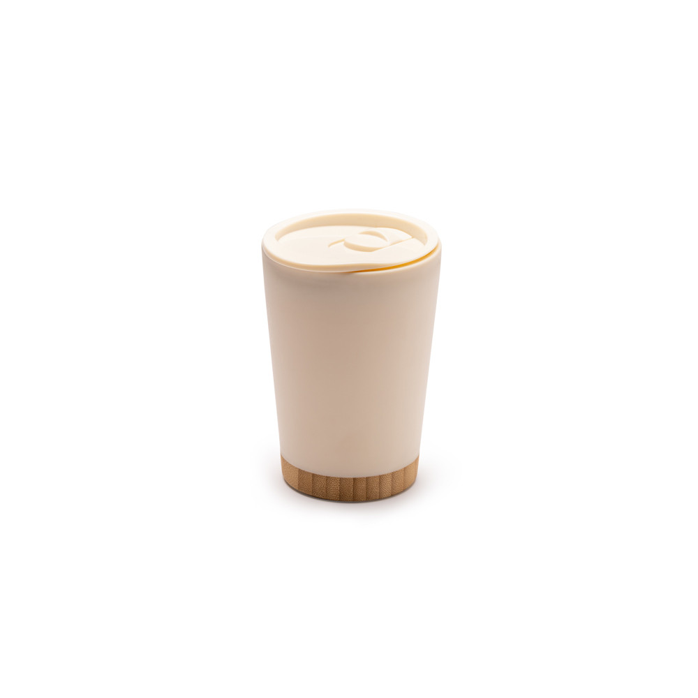 Tasse à double paroi avec corps en PP recyclé et base en bambou. Comprend un couvercle doseur. Capacité : 290 ml. Présentation en boîte éco-conception.Destinataire :