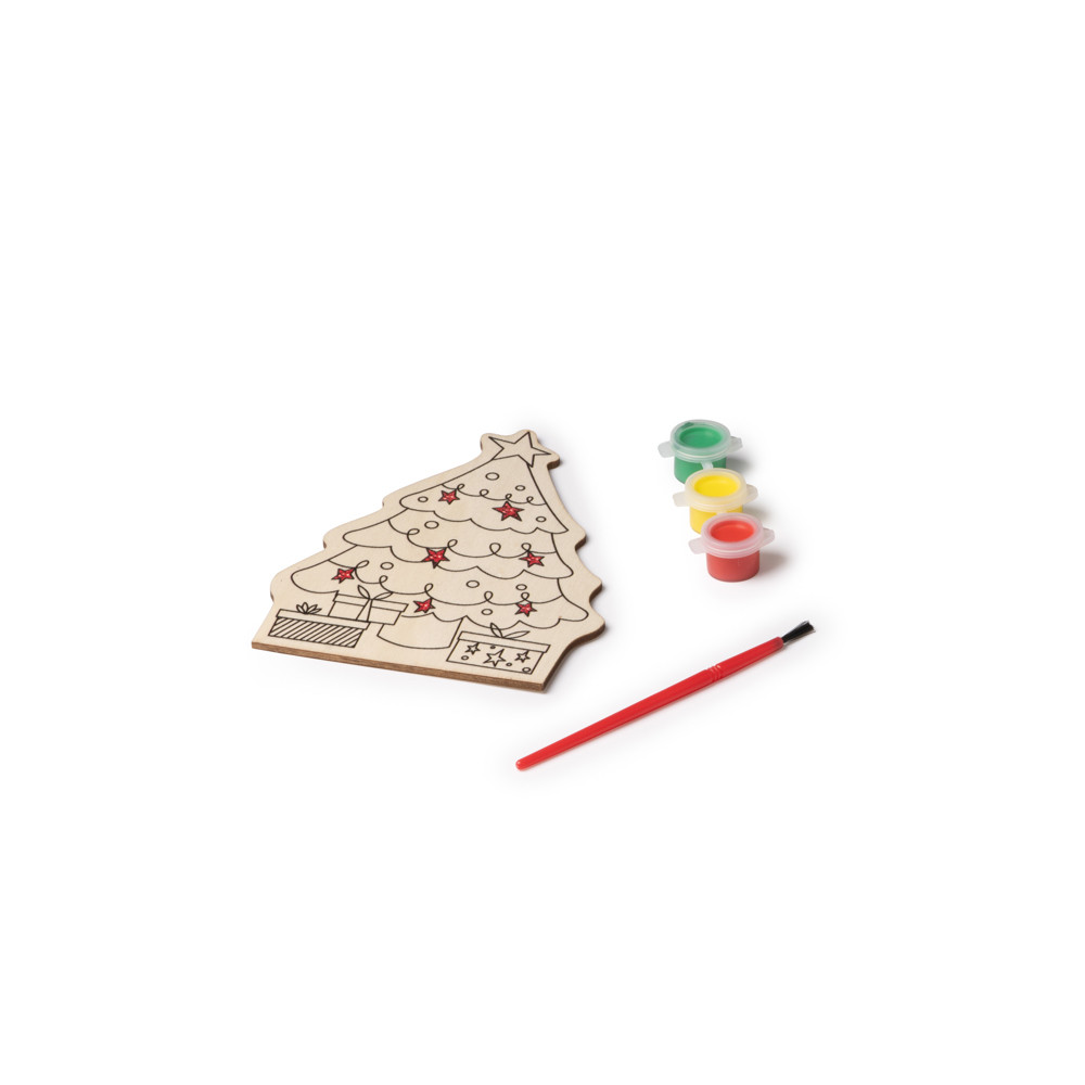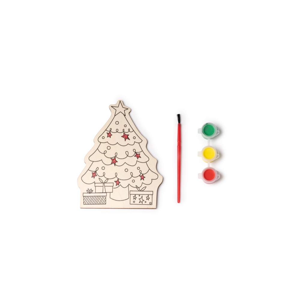 Set de coloriage de Noël avec motif de Noël en bois, comprenant un pinceau et trois peintures. Idéal pour permettre aux enfants d'explorer leur créativité pendant les fêtes de fin d'année.Destinataire :