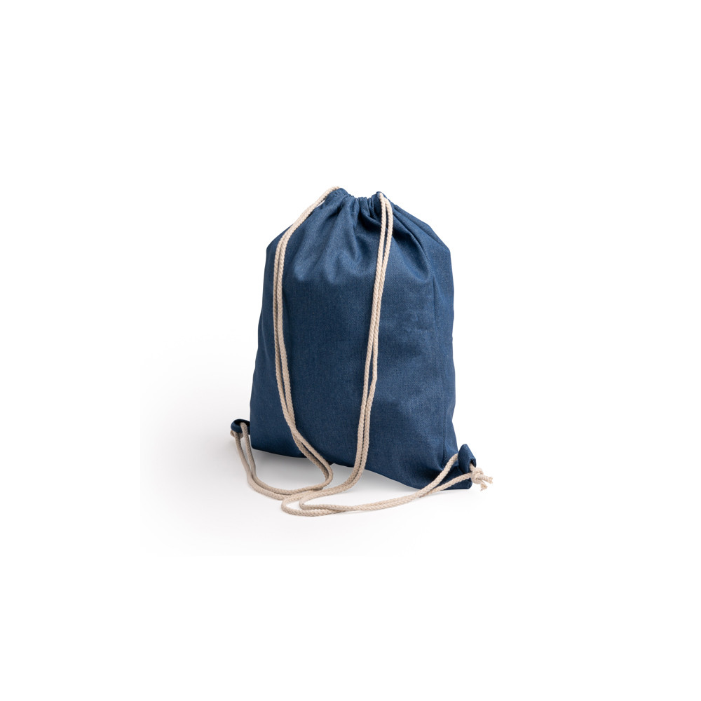 Sac à dos avec cordon de serrage en denim recyclé et cordons de coton de 8 mm de long.Destinataire :