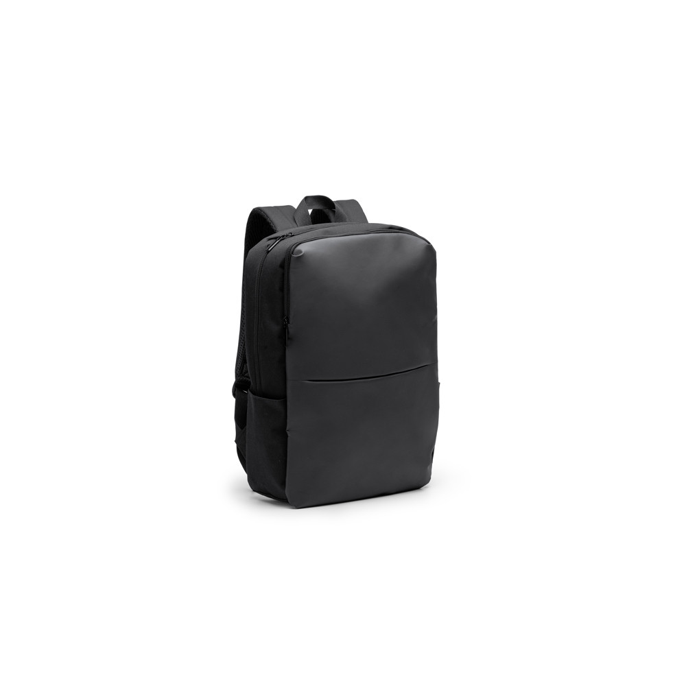 Sac à dos en cuir PU et polyester RPET 600D. Compartiment principal avec poche intérieure rembourrée de 15'' pour ordinateur portable. Poche avant. Dos et bretelles rembourrés.Destinataire :