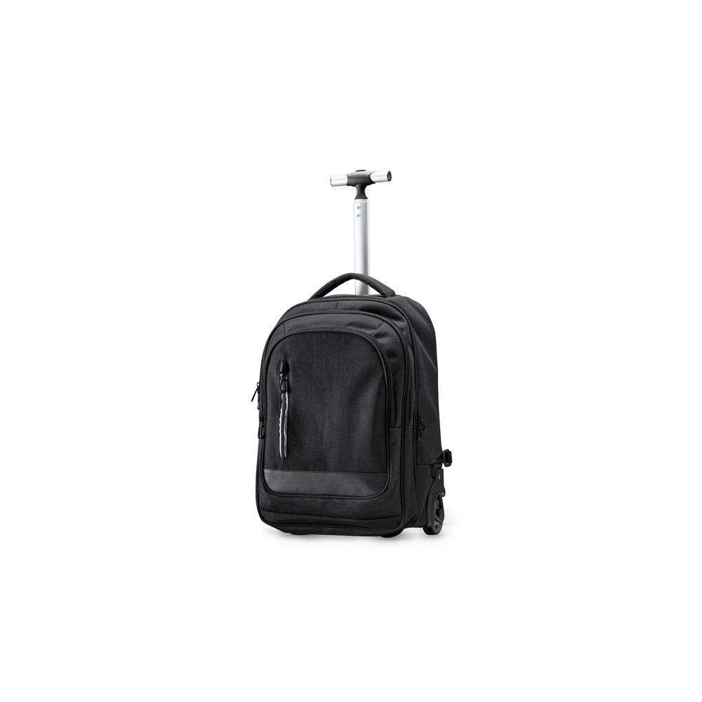 Sac à dos avec fonction trolley en polyester chiné 300D. Poche principale spacieuse avec compartiment intérieur rembourré, idéale pour les ordinateurs portables jusqu'à 15''. Deux poches avec compartiments intérieurs et une poche frontale. Cadre de haute qualité et résistant. Bretelles ajustables et rembourrées. Couvre-roues résistant aux taches.Destinataire :