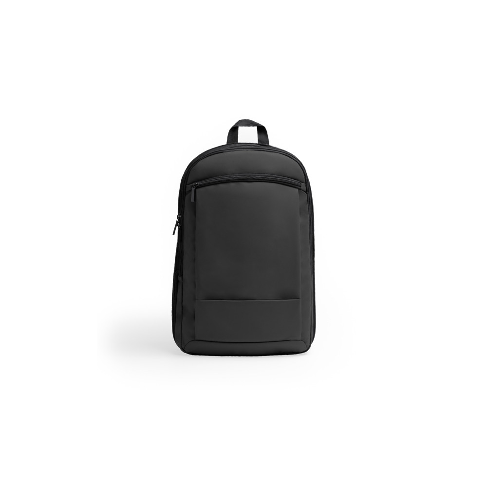 Sac à dos en cuir PU avec un compartiment principal et une poche intérieure rembourrée pour un ordinateur portable de 17". Comprend deux poches extérieures avec fermeture à glissière, une sur le devant et une sur le côté. Le côté extensible est en polyester RPET recyclé. Il a une bande pour l'attacher. chariot, offrant un confort lors des voyages. D'une capacité de 15 litres.Destinataire :