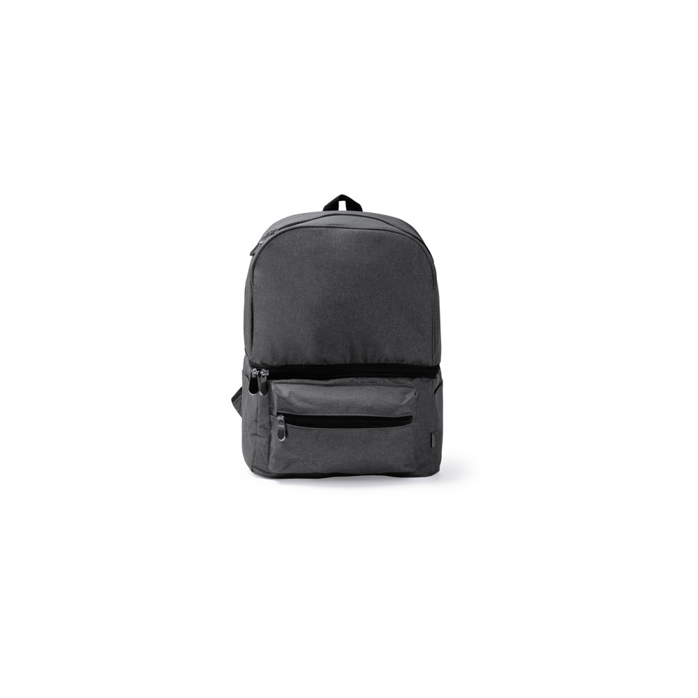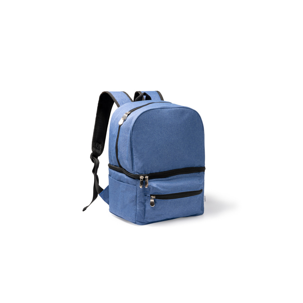 Sac à dos refroidisseur en 300D RPET avec double compartiment, poche avant avec fermeture à glissière et 2 poches latérales. Compartiment supérieur avec 3 poches intérieures. Compartiment inférieur avec intérieur isotherme. Sangles rembourrées.Destinataire :