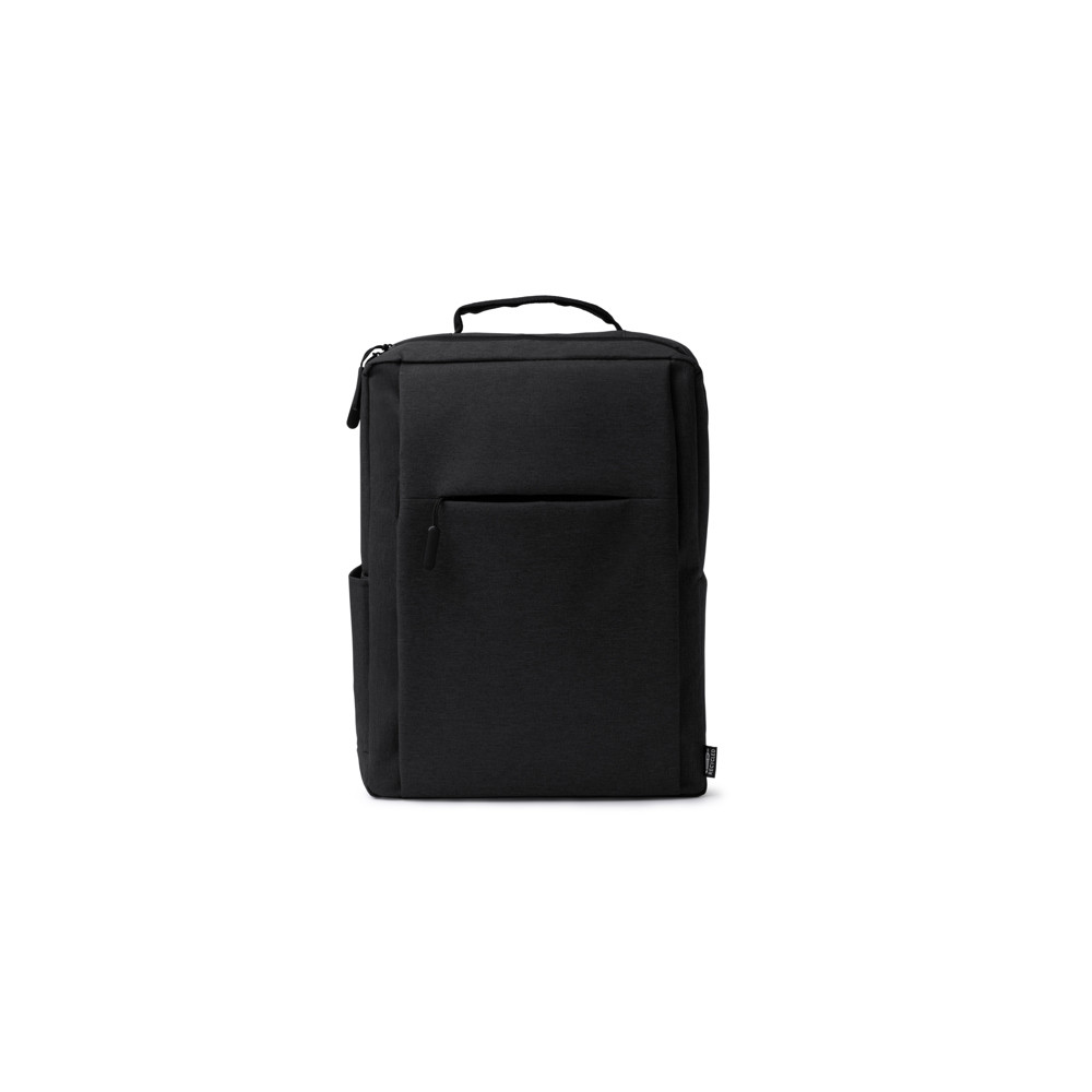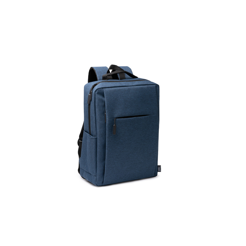 Sac à dos en 600D RPET avec finition chinée. Grand compartiment intérieur avec poche pour ordinateur portable 15". Poche extérieure avec fermeture à glissière et poche latérale. Poignées rembourrées. Courroie de transport. Capacité de 14 litres.Destinataire :