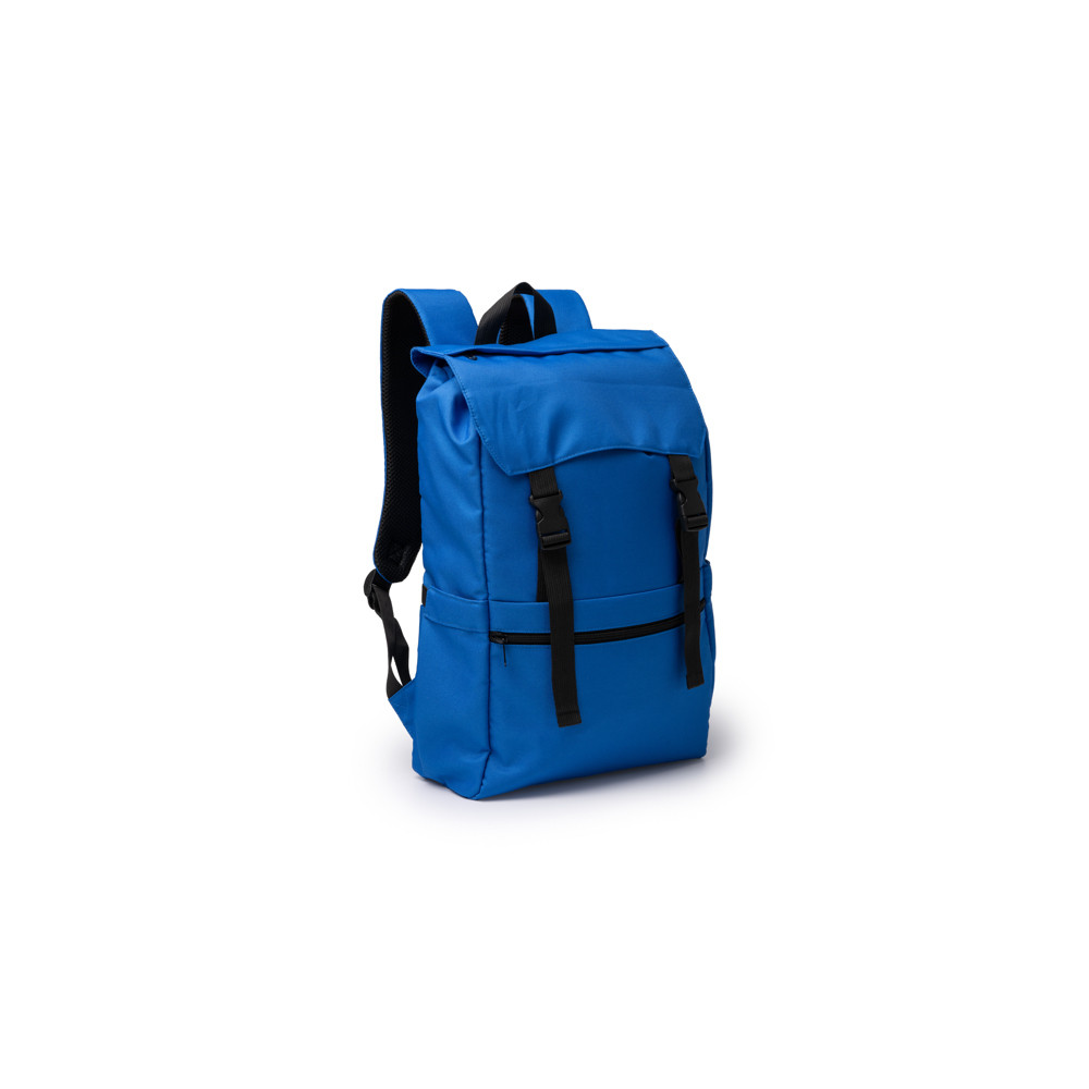 Sac à dos avec rabat en RPET 600D. Rabat avec fermetures réglables. Compartiment principal avec poche intérieure pour ordinateur portable de 15 po. Poche extérieure sur le rabat et poche avant avec fermeture à glissière et 2 poches latérales avec élastique. Sangles et dos rembourrés.Destinataire :