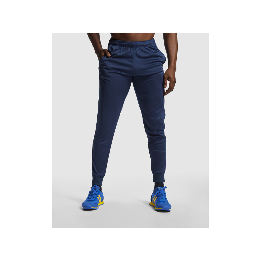 Pantalon pour entrainement, avec ceinture élastique ajustable avec cordons de serrages interieurs. Poches latérales. Bas serrés et zip.