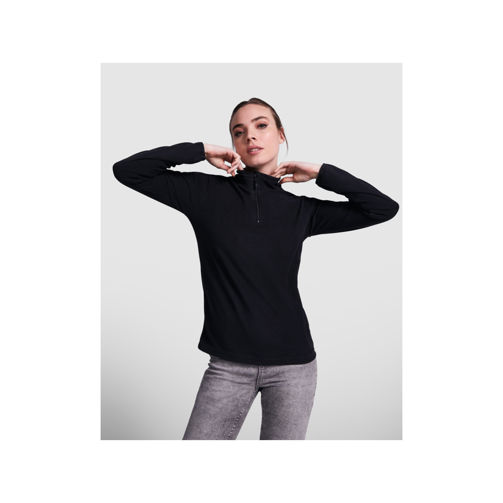 Micropolaire avec col cheminée et protecteur menton. Poignets liserés élastiques ton sur ton. *Coupe ajustée.