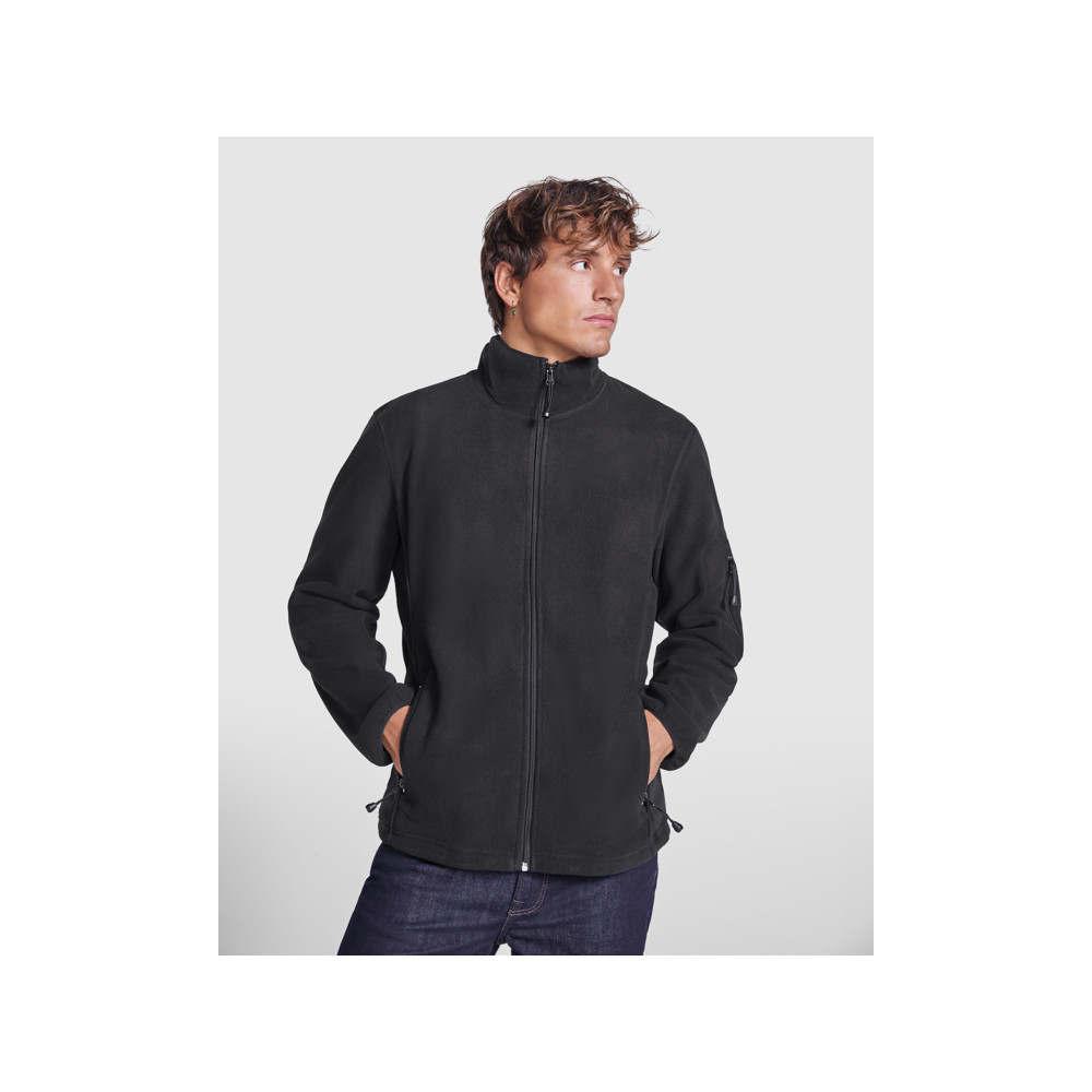 Veste polaire pour le sport, col montant et manches longues avec liseré contrasté. Zip central. Poches avec zip sur la manche gauche et zip central, tous deux contrastés. Coutures latérales et poitrine. Coudières ton sur ton.