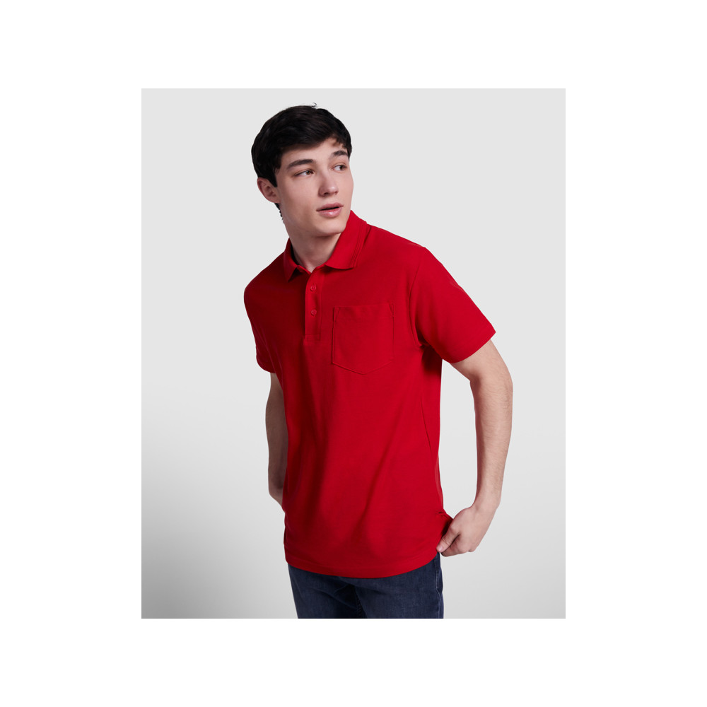 Polo manches courtes avec poche sur la poitrine gauche. Col et manches en côtes 1x1 avec détail en relief. Patte de boutonnage 3 boutons. Bande de propreté renforcé au cou.