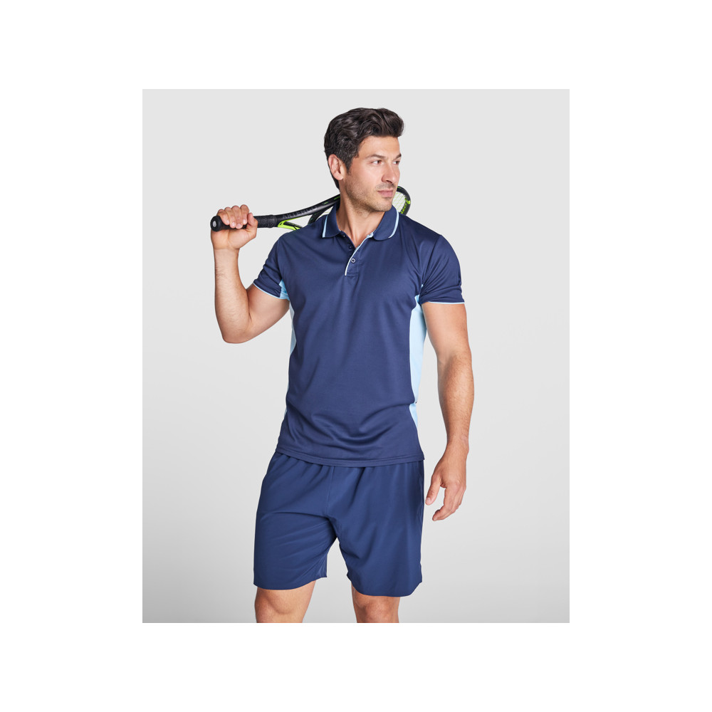 Polo technique bicolore manches courtes. Col avec patte de boutonnage et boutons en contraste de couleur. Tissu respirant lavage et séchage facile. Spécial sublimation.