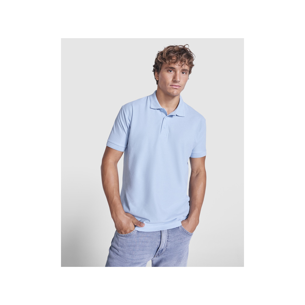 Polo à manches courtes. Col et manches en côtes 1x1 avec détail en relief. Patte de boutonnage 3 boutons. Bande de propreté renforcé au cou. Ouvertures latérales et poche en option.