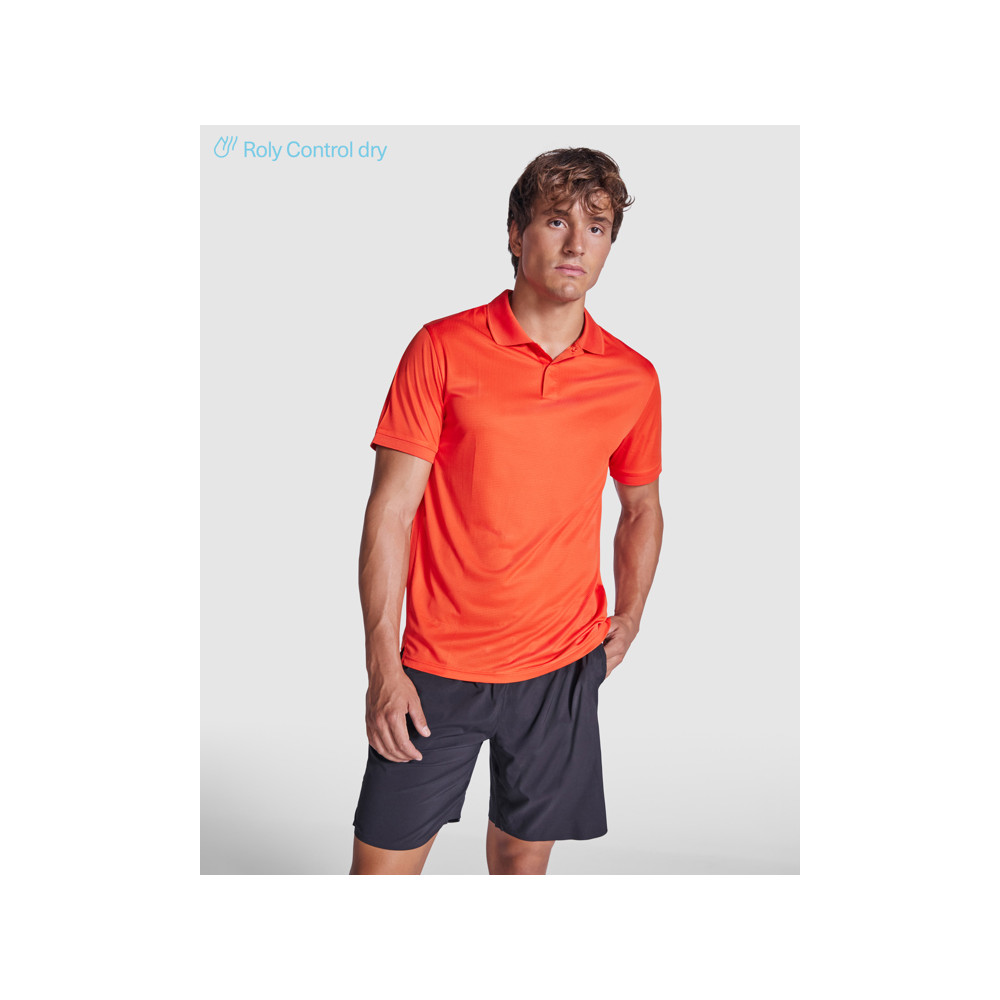 Polo technique respirant à manches courtes. Roly Control Dry. Antibactérien. Coutures latérales avant avec fentes. Col et poignets côtelés 1x1 ton sur ton. Patte de boutonnage ton sur ton avec bouton-pression. Biais d'encolure ton sur ton. Certifié GRS.