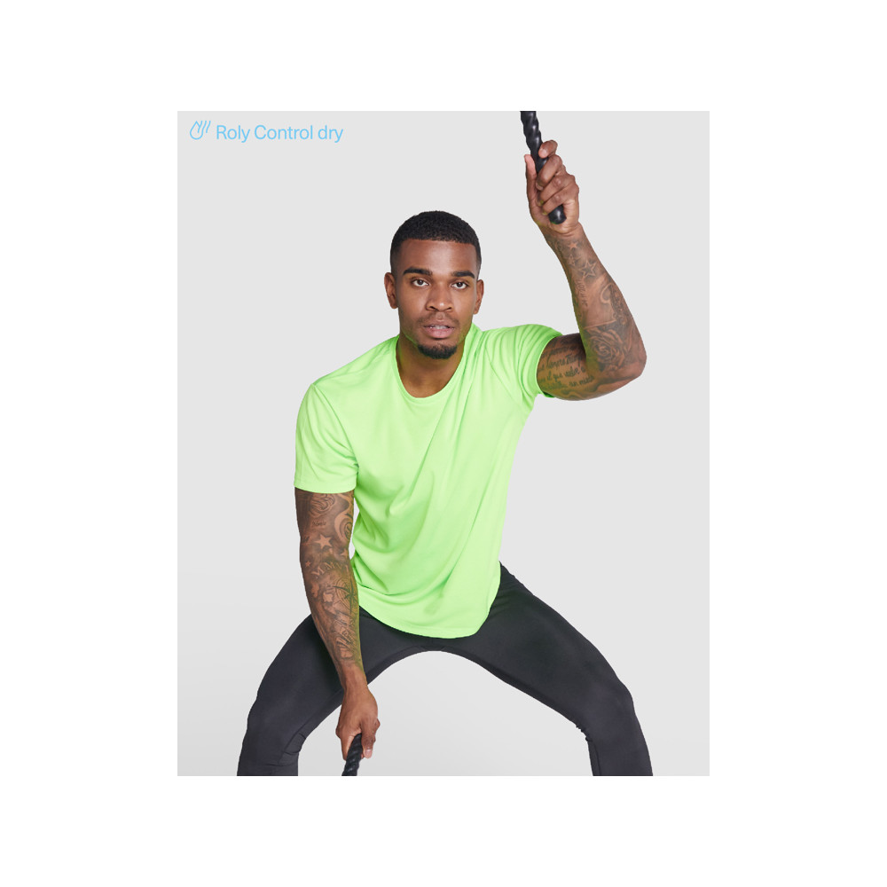 T-shirt technique à manches courtes en tissu polyester recyclé CONTROL DRY. Col rond avec bande de propreté ton sur ton. Panneaux inférieurs sur les manches. Surpiquage ton sur ton aux emmanchures et aux manches. Étiquette d'identification Logo ECO sur la manche